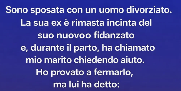 Sua ex moglie ha sempre mantenuto una distanza cortese, e onestamente l’ho sempre preferito così. Ma qualche settimana fa, tutto è cambiato. Lei era incinta del suo nuovo compagno e, quando è entrata improvvisamente in travaglio, non ha chiamato il padre del bambino.