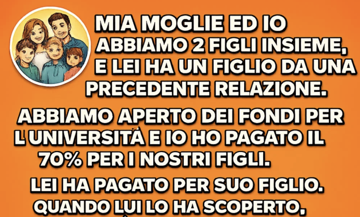 Io e mia moglie abbiamo due figli insieme, e lei ha un figlio nato da una precedente relazione. Abbiamo aperto dei fondi universitari per tutti e tre: io ho coperto il 70% delle spese per i nostri due figli, mentre lei si è occupata di Julian, suo figlio maggiore. Questa divisione mi è sempre sembrata giusta: volevo garantire un futuro ai miei figli biologici, rispettando però i confini naturali della nostra famiglia allargata. Il padre di Julian non era presente nella sua vita, ma mia moglie Sarah aveva un buon lavoro e insisteva per occuparsi da sola del suo futuro.