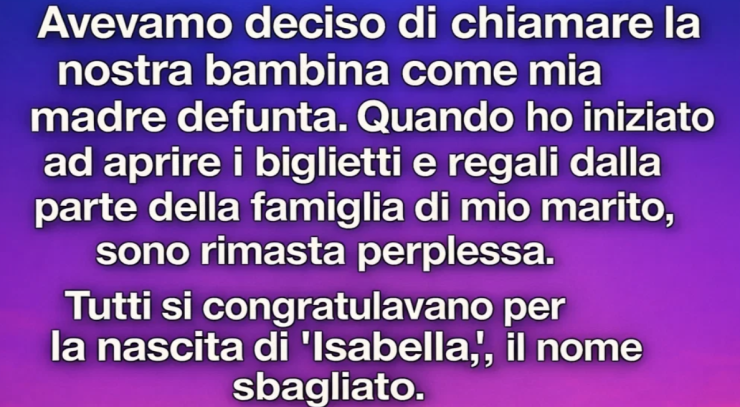 Quando iniziai ad aprire i biglietti e i regali dalla parte della famiglia di mio marito, però, rimasi perplessa. Tutti si congratulavano per la nascita di Isabella.