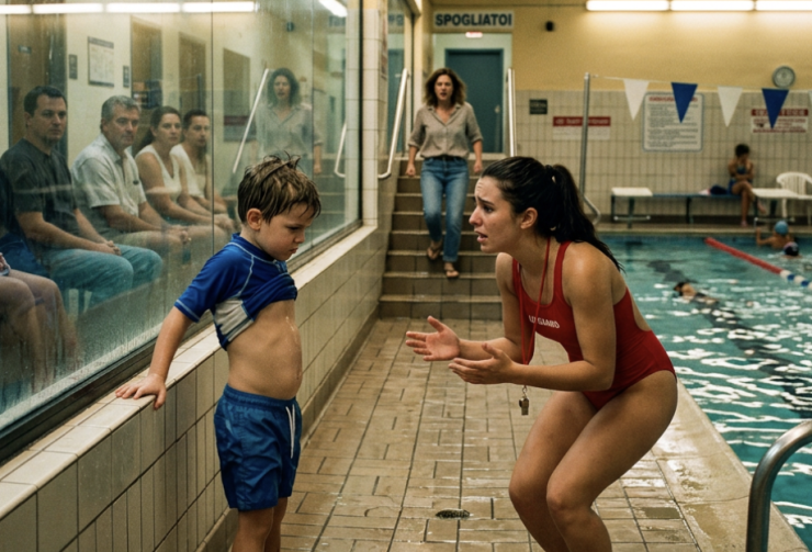 La ascoltavo e sentivo dentro di me due sentimenti opposti che si scontravano: pietà e rabbia. Lei piangeva senza fare rumore, fissando le sue mani. “Gli avevo comprato quella maglietta per coprire i lividi,” disse. “Gli dicevo che era per proteggerlo dal freddo, dal cloro, dal sole. In realtà era per nascondere quello che succedeva in casa.” Le chiesi perché non avesse chiamato la polizia. La sua bocca tremò. “Perché Evan diceva che se lo facevo, avrebbe portato via Noah e non l’avrei mai più trovato. Diceva che aveva amici, che nessuno mi avrebbe creduta. E io… io gli ho creduto.” Fece una pausa lunga, poi aggiunse: “Il giorno della lezione era fuori, nel parcheggio. Mi aveva seguito. Mi ha scritto: se qualcuno vede, entro io.” Allora capii il gesto dietro il vetro, la rabbia, l’urgenza, il panico. Non stava semplicemente pretendendo che Noah nuotasse. Stava cercando di mantenere una finzione perché era terrorizzata da quello che sarebbe successo dopo.