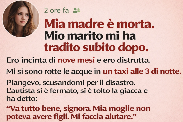 L’autista accostò con calma, senza mostrare il minimo fastidio. Si tolse la giacca, la sistemò con delicatezza sul sedile, poi si voltò verso di me con una gentilezza che non provavo da tempo.