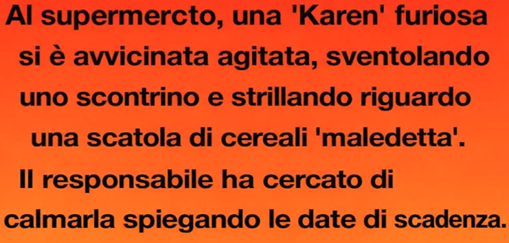Al supermercato, una “Karen” scatenata piombò all’improvviso, sventolando uno scontrino e urlando che una scatola di cereali era maledetta. Il direttore cercò di calmarla, spiegandole con pazienza le date di scadenza. Ma la sua voce salì di ottava in ottava, attirando una folla di curiosi. Proprio mentre la sicurezza stava per intervenire, lei afferrò un cestino e ne rovesciò il contenuto sul pavimento.