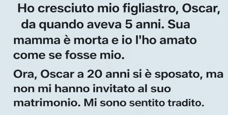 Poi, un mese fa, ho scoperto che stava per sposarsi. Sorrisi, lo abbracciai, gli dissi quanto fossi orgogliosa. Quella sera, però, aprii il sito del matrimonio — e non c’era il mio nome. Nessun posto riservato. Nessun invito. Neanche come semplice ospite.