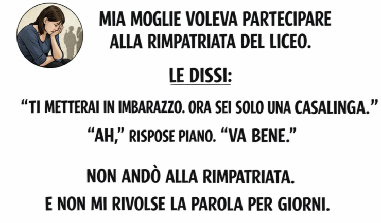 “Dai, Anna. Gli altri saranno avvocati, medici, dirigenti. Tu ti metterai solo in imbarazzo. Ormai sei solo una casalinga.”