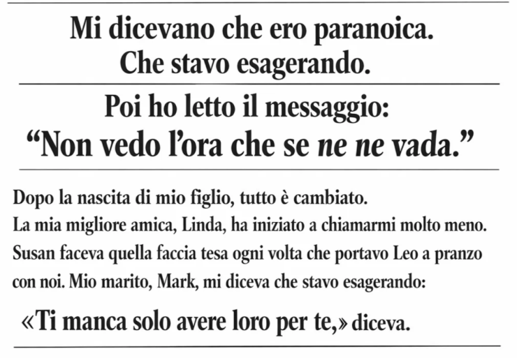 Mi sono ripetuta che aveva ragione. Mi dicevo che ero solo una neo‑mamma stanca che vedeva fantasmi ovunque.