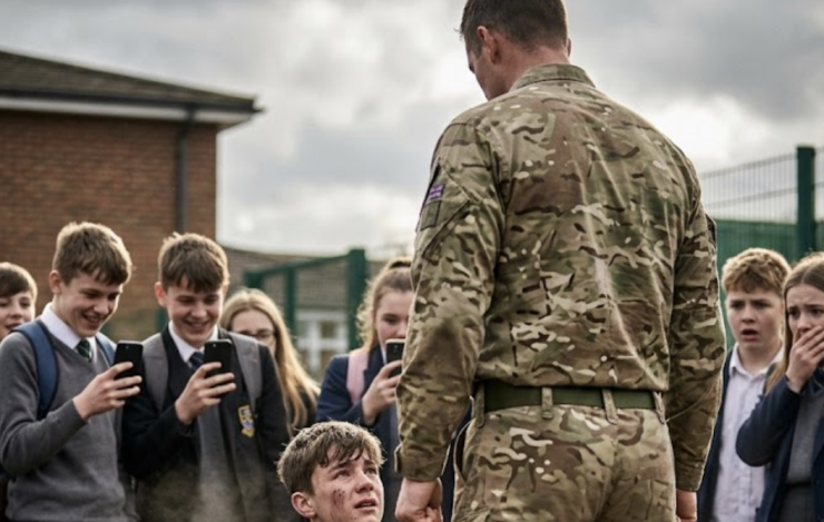 Mi hanno costretto a inginocchiarmi nel fango mentre la prof guardava l’orologio… ma non sapevano chi stava tornando per me