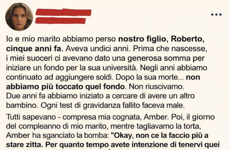 “Hai ragione,” dissi, guardandola negli occhi. “Quel fondo non lo sta usando nessuno. Perché appartiene a mio figlio. A quello che hai appena cancellato con le tue parole.”