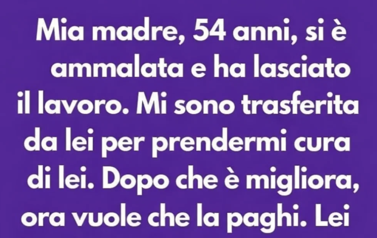 Quando finalmente si è rimessa, mi aspettavo almeno un po’ di riconoscenza. Invece mi ha detto: