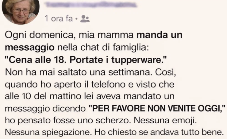 Ogni domenica, mia madre manda un messaggio nella chat di famiglia:
