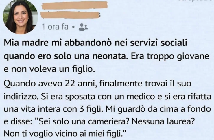 Mia madre mi ha abbandonata quando ero una neonata.