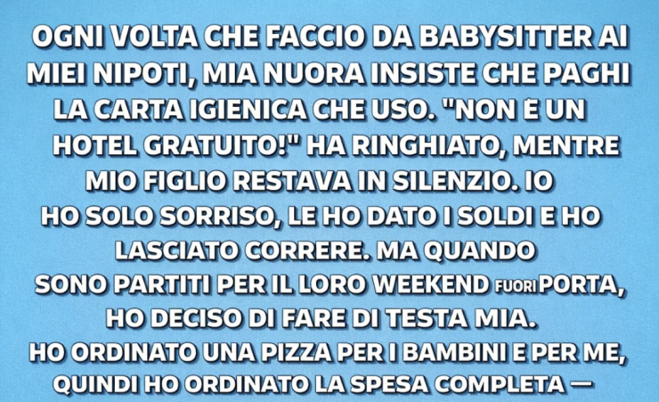 Da allora, mia nuora non ha più detto una parola sul farmi pagare la carta igienica — anche se si capisce che la cosa le brucia ancora.