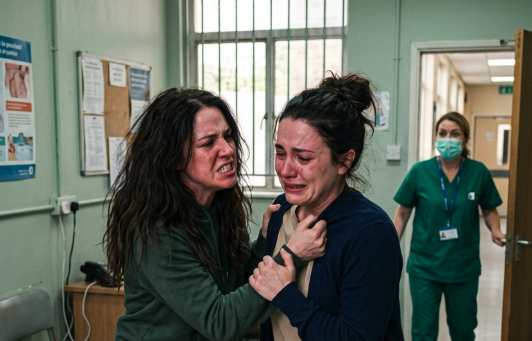 L’infermiera aprì la porta e ci trovò a separarci giusto in tempo.