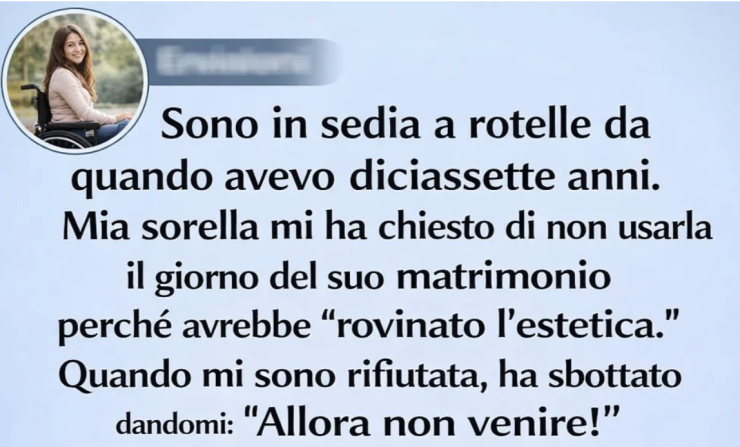“Potresti magari… non usare la sedia a rotelle durante la cerimonia?” ha chiesto.