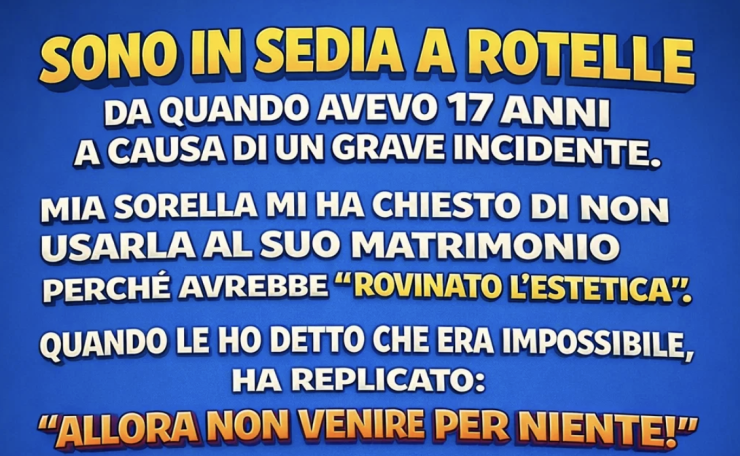 «Potresti magari… non usare la sedia a rotelle alla cerimonia? Rovinerà l’estetica vintage che sto cercando.»