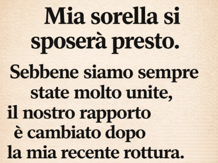 Mia sorella si sposa presto. Anche se siamo sempre state molto unite, il nostro rapporto è cambiato dopo la mia recente rottura. Ieri mi ha informata che non sono più invitata al matrimonio, ma il mio ex sì, perché secondo lei “altrimenti sarebbe troppo imbarazzante”.