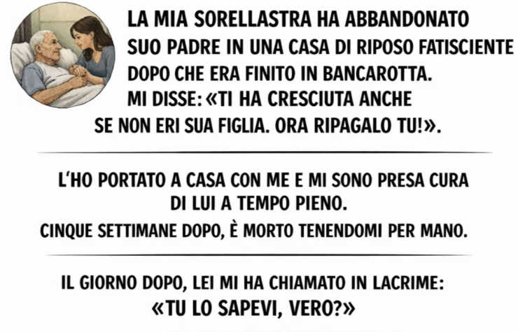 Cinque anni prima, tutto era crollato. La sua azienda fallì—o almeno così ci dissero. La casa venne venduta, i conti svuotati, e l’uomo che una volta pagava le rette universitarie senza battere ciglio si ritrovò a contare le monete al supermercato. Clara, la mia sorellastra, era furiosa. Lo incolpava per averle rovinato lo stile di vita. Andò via di casa, smise di chiamare e raccontò a chiunque volesse ascoltare che lui le aveva distrutto il futuro.