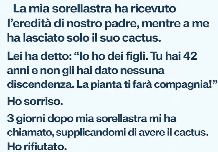Mia Sorellastra Mi Derise per Aver Ereditato Solo un Cactus—9 Settimane Dopo, Tutto Cambiò