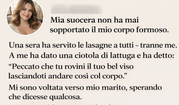 Ho sempre avuto un fisico naturalmente curvy — non il classico corpo da passerella, ma sano, e mi sono sempre sentita a mio agio con me stessa. Mio marito ha sempre detto di amarmi anche per questo. Sua madre, invece, evidentemente non la pensava allo stesso modo.