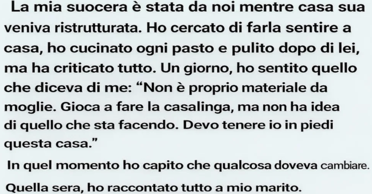 Non mi ferivano i lavori di casa, ma il modo in cui mi trattava: come se fossi inferiore, come se non meritassi di essere la moglie di suo figlio.