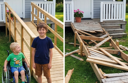 Usando i suoi risparmi e le capacità che aveva imparato dal suo defunto padre, Ethan ha passato giorni a costruire con cura una rampa di legno