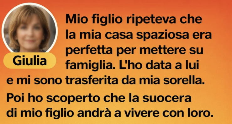 Mio figlio continuava a ripetere che la mia grande casa era perfetta per mettere su famiglia. Gliel’ho data e mi sono trasferita da mia sorella. Poi ho scoperto che la suocera di mio figlio sarebbe andata a vivere con loro. Ho detto: “Perché dovrebbe vivere nella MIA casa?” Mia nuora ha sorriso con aria compiaciuta e ha confessato che faceva parte del piano fin dall’inizio.