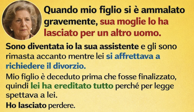 L’avvocato mi spiegò finalmente i dettagli che lei aveva ignorato nella sua smania di ereditare. Sì, tutto era passato a lei — sulla carta. Ma non poteva accedere a un solo centesimo finché non avesse rispettato una condizione che mio figlio aveva aggiunto dopo che lei lo aveva lasciato.
