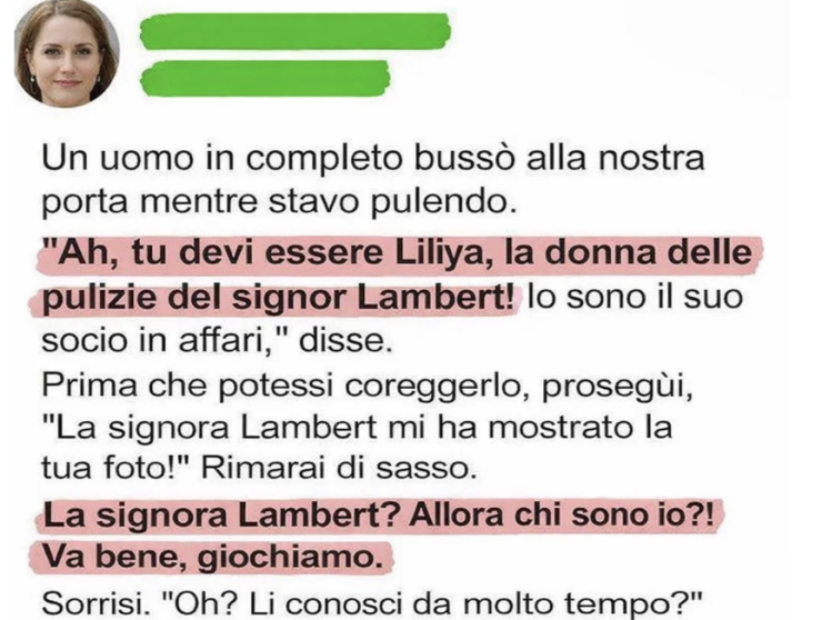 Quando un uomo elegante suonò al campanello e mi scambiò per la donna delle pulizie, decisi di stargli al gioco. Quello che sembrava un malinteso quasi divertente si trasformò presto in qualcosa che non avrei mai immaginato.