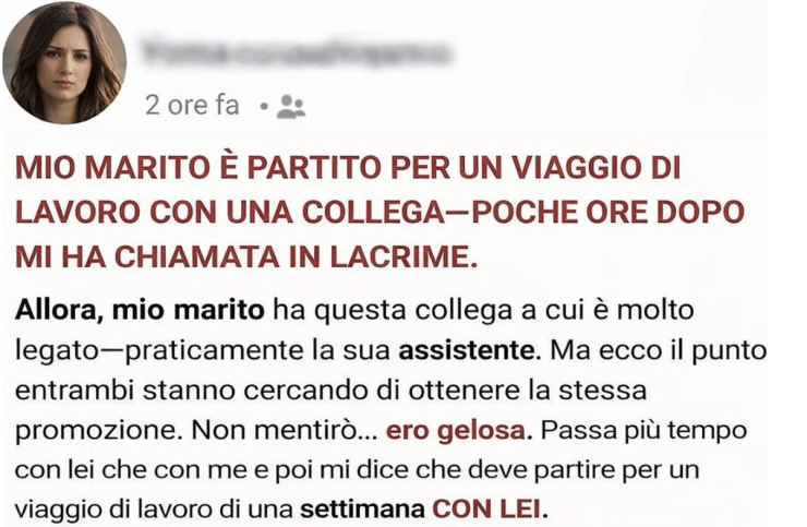 Quando mi disse che sarebbero partiti insieme per un viaggio di quattro giorni, qualcosa dentro di me si spezzò in silenzio.