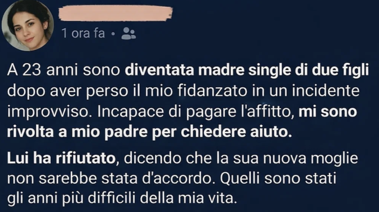 Avevo 23 anni quando sono diventata madre single di due bambini dopo aver perso il mio promesso sposo in un incidente improvviso. Un attimo stavamo progettando il futuro insieme, quello dopo ero lì da sola, con i nostri figli in braccio, chiedendomi come avrei fatto a sopravvivere. Senza un sistema di supporto e con uno stipendio minimo, non riuscivo a pagare affitto e spesa. Ogni mese era una scelta: riscaldamento o pannolini, benzina o cibo.