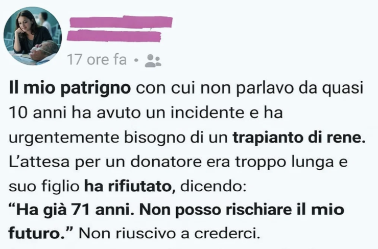 Era un martedì sera, uno di quelli in cui la luce cala presto e tutto sembra incompiuto. Sul telefono comparve il numero di un ospedale. Stavo per lasciar squillare. Quasi. Poi una voce stanca mi chiese se fossi parente di Richard Hale e se potessi andare lì. C’era stato un incidente. I reni stavano cedendo. Serviva un trapianto—urgentemente.