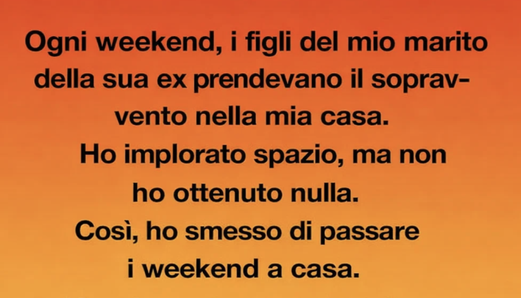 Ogni fine settimana, i figli del mio ex marito dal suo precedente matrimonio prendevano possesso della mia casa. Imploravo spazio, ma non ottenevo nulla.