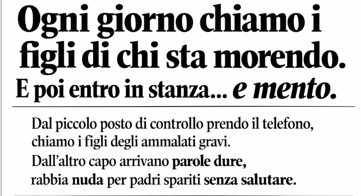 Ogni giorno chiamo i figli di chi sta morendo. E poi entro in stanza… e mento