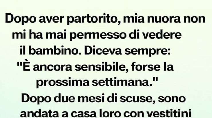 Per due mesi dopo che mia nuora ha partorito, ho vissuto in una tempesta silenziosa di confusione e dolore. Ogni volta che chiedevo di vedere il bambino, lei dava sempre la stessa risposta gentile ma distante: