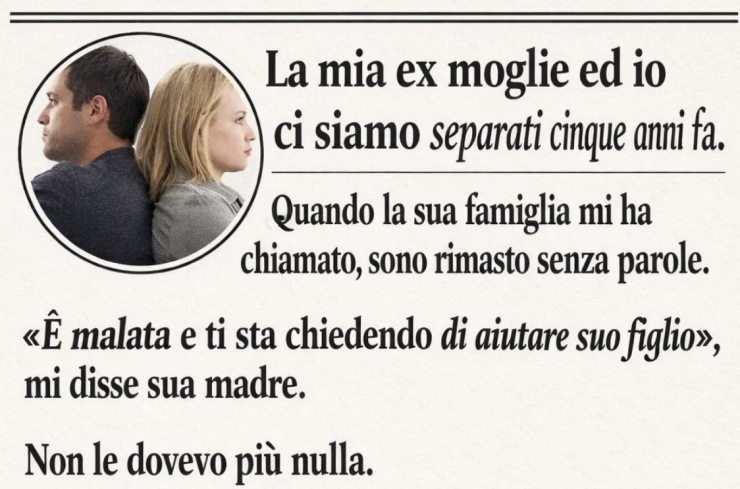 Mi ci volle un momento per respirare. Non perché la amassi ancora, ma perché avevo passato anni a cercare di dimenticare tutto ciò che era successo. Il nostro divorzio non era stato burrascoso, solo… freddo. Ci eravamo allontanati, avevamo detto parole dure, e poi avevamo preso strade diverse. Non mi aveva mai più cercato. E io non avevo fatto lo stesso.