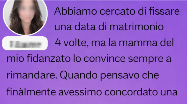 Ma la mamma del mio fidanzato riusciva sempre a convincerlo a posticipare.