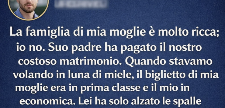Il suo biglietto diceva “Economy”, mentre quello della moglie “Prima Classe”.