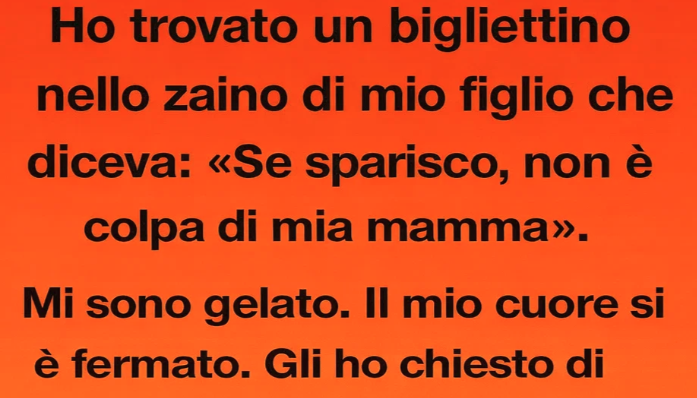 Ho trovato un biglietto nello zaino di mio figlio che diceva: “Se scompaio, non è colpa di mia madre.” Mi sono gelata. Il cuore mi si è fermato. Gliene ho parlato quella sera, cercando di non andare nel panico. Mi ha guardata dritto negli occhi e ha detto: