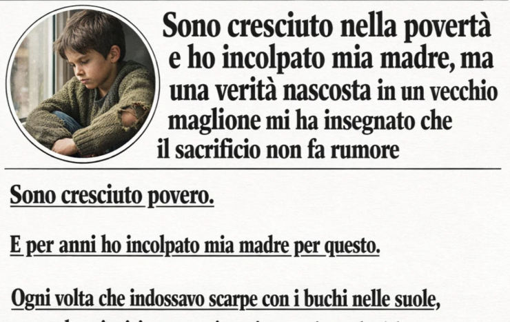Dentro c’era il mio vecchio maglione d’infanzia — quello di lana blu, ruvido, con il colletto storto che avevo sempre odiato.