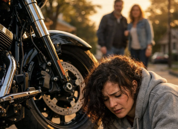 La donna affondò il piede sull’acceleratore, le gomme stridettero mentre il SUV di lusso partiva dal marciapiede, lasciando la guardia di sicurezza confusa, la folla vergognosa e la Harley Davidson abbandonata di Tank seduta da sola sul marciapiede come una lapide monolitica alla loro apatia.