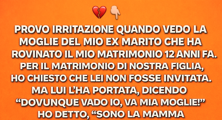 Mi irrita ancora vedere la moglie del mio ex marito — la donna che, dodici anni fa, distrusse il mio matrimonio. Per il matrimonio di nostra figlia, avevo chiesto che non fosse invitata. Ma lui la portò comunque, dicendo: