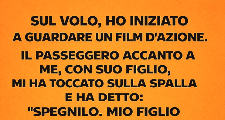Durante un volo, avevo appena iniziato a guardare un film d’azione quando il passeggero accanto a me, seduto con il figlio, mi toccò la spalla e disse: