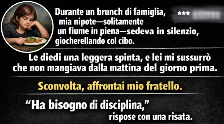 Durante un brunch di famiglia, mia nipote—solitamente un fiume in piena—sedeva in silenzio, giocherellando col cibo. Le diedi una leggera spinta, e lei mi sussurrò che non mangiava dalla mattina del giorno prima.