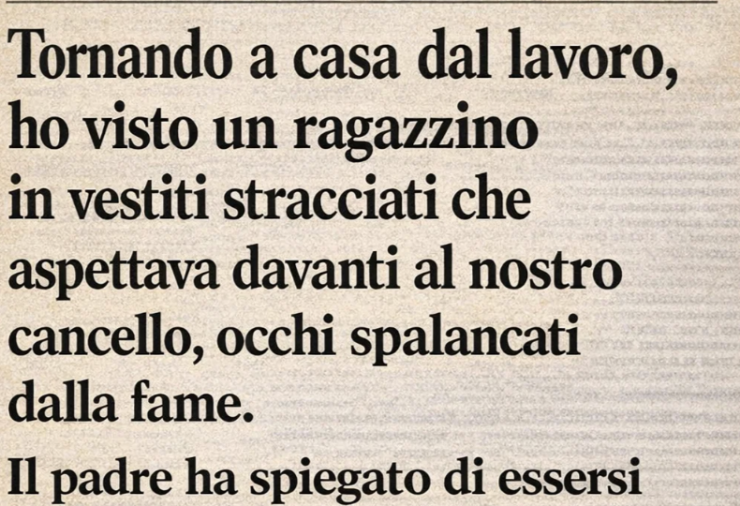 Li invitai entrambi a entrare per un pasto caldo. Il volto del bambino si illuminò come a Natale. Sul viso del padre vidi un misto di speranza e incredulità.