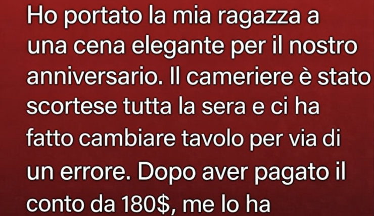 La serata non è andata come avevo previsto. Ma mi ha lasciato qualcosa di più prezioso di una cena perfetta: la consapevolezza che la dignità non richiede conflitto, ma chiarezza. E che il rispetto, una volta perso, costa molto più di qualsiasi conto.