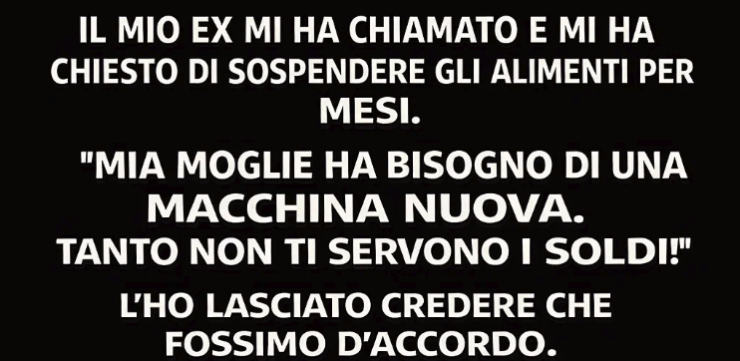 Il mio ex mi chiamò chiedendo di sospendere per qualche mese il mantenimento. “Mia moglie ha bisogno di una macchina nuova. Tanto tu non ne hai davvero bisogno, no?” Lo lasciai credere che fossi d’accordo. La settimana successiva, quando andai a lasciare nostro figlio, gli consegnai una busta. “Visto che non vuoi assumerti le tue responsabilità economiche, lo farò io… ma in un altro modo,” dissi con calma.