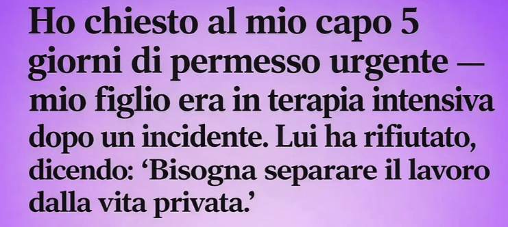 Dopo aver passato la notte sveglia su una sedia rigida in sala d’attesa, chiamai il mio responsabile per chiedere cinque giorni di permesso.