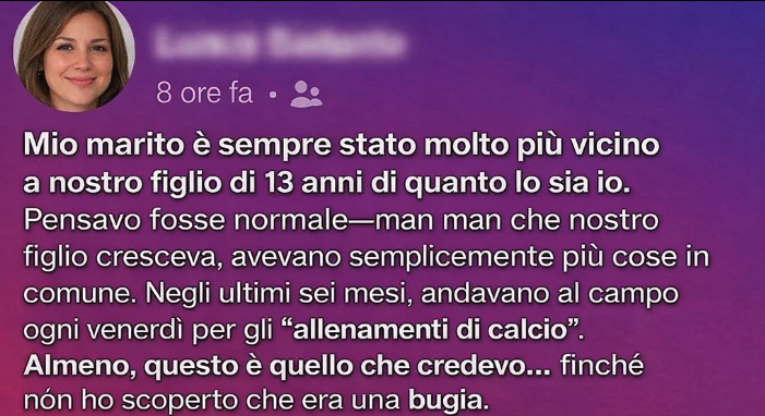Quando mio marito disse che ogni venerdì sarebbero andati agli allenamenti di calcio, non feci domande. Era diventato parte della nostra routine: una casa silenziosa e la cena avanzata ad aspettarli. Mi fidavo di loro, e forse ancora di più, mi fidavo del conforto semplice di credere che tutto nella nostra famiglia fosse esattamente come sembrava.