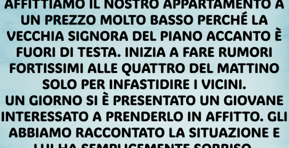Affittiamo il nostro appartamento a poco, perché la vecchia signora del piano accanto era completamente fuori di testa. Ogni notte, alle quattro del mattino, cominciava a fare rumori assurdi per infastidire i vicini. Un...