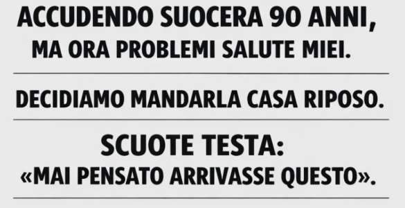 Dieci anni accudito suocera 90enne, ora problemi salute miei. Decidiamo casa riposo. Scuote testa: «Mai pensato arrivasse questo». Marito tace. Settimana dopo, geliamo scoprendo vuota conto risparmi tutto. Quasi 68mila...