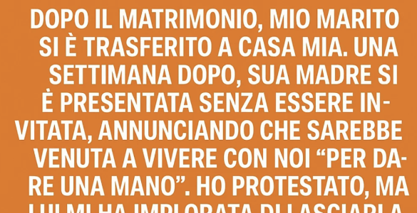 Dopo il matrimonio, mio marito si è trasferito a casa mia. Una settimana dopo, sua madre si è presentata senza preavviso, dicendo che sarebbe venuta a vivere con noi “per aiutare”. Ho protestato, ma lui mi ha supplicata...